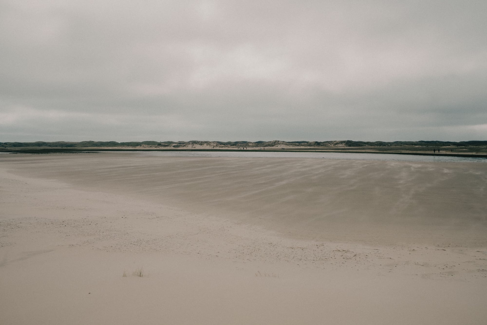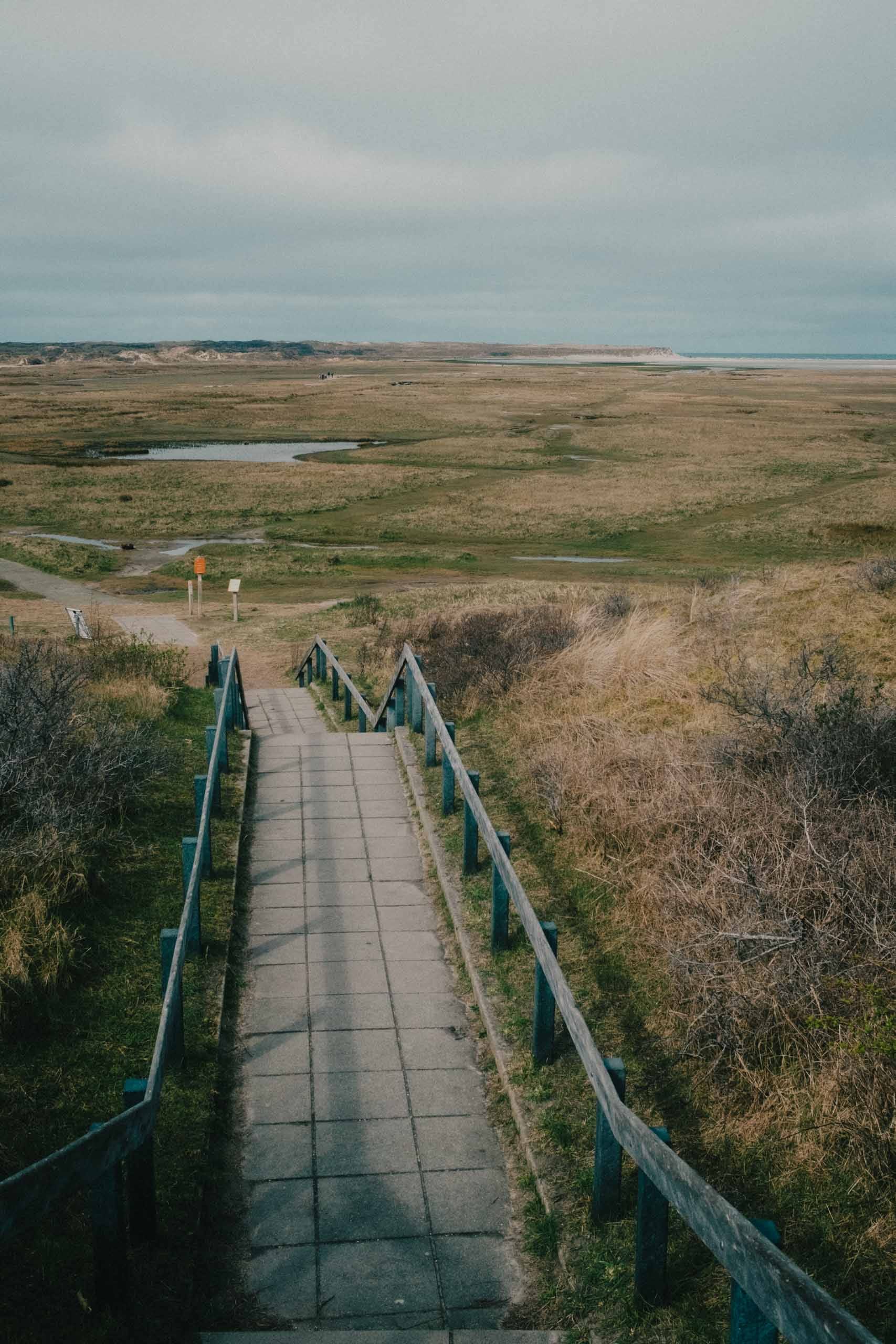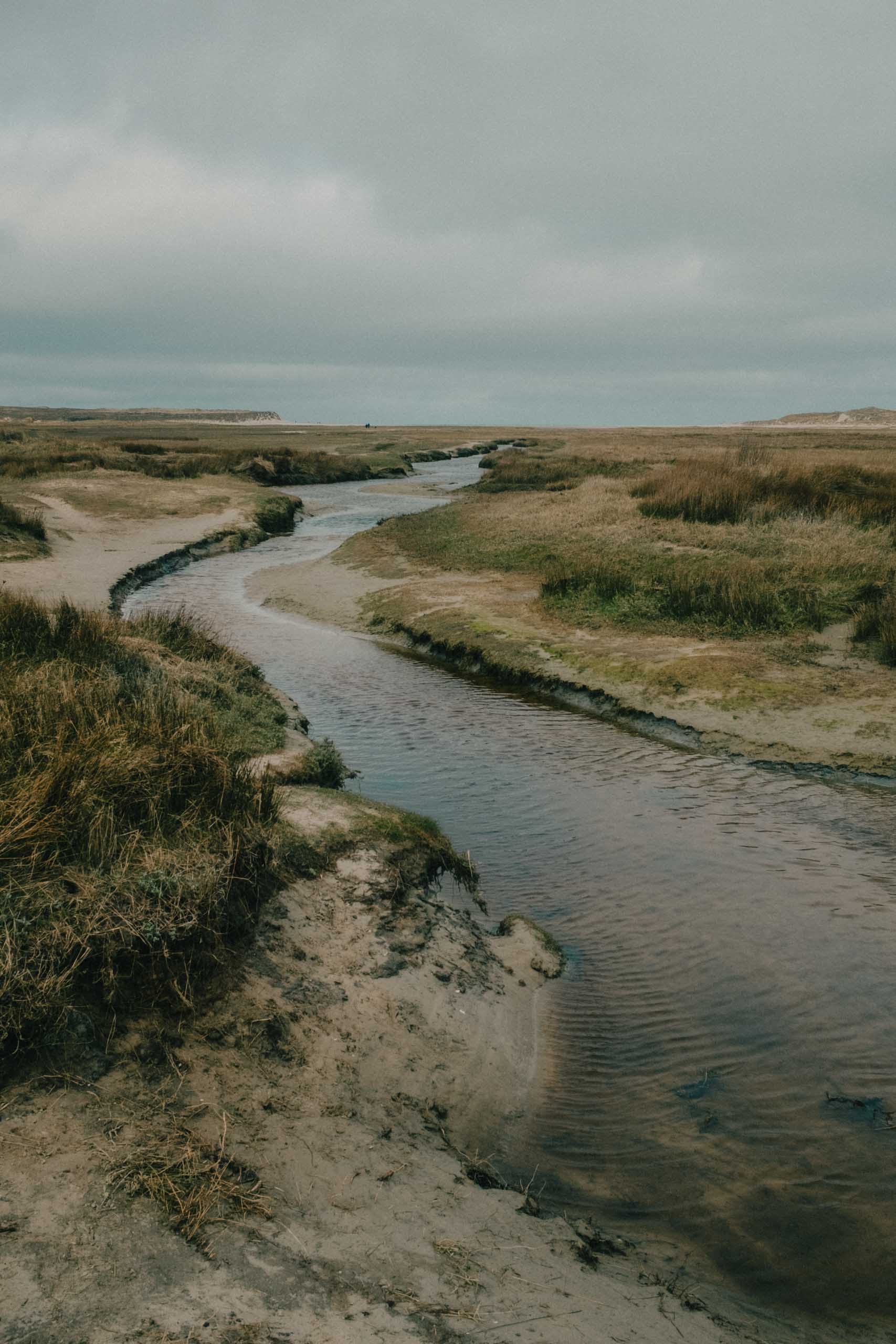 Only after descending down the steps across the 'Zanddijk,' which protects the northern part of the island from the sea, you truly come in contact with the elements. The soil is saturated with water, the wind blows freely, and the air has a salty crisp in it that you don't quite get on the other side of the dike. A large canal flows inland from the sea, with little canals sprouting along the sides of it. People traverse the unpredictable landscape by meandering through it, carving out their own paths where they can.