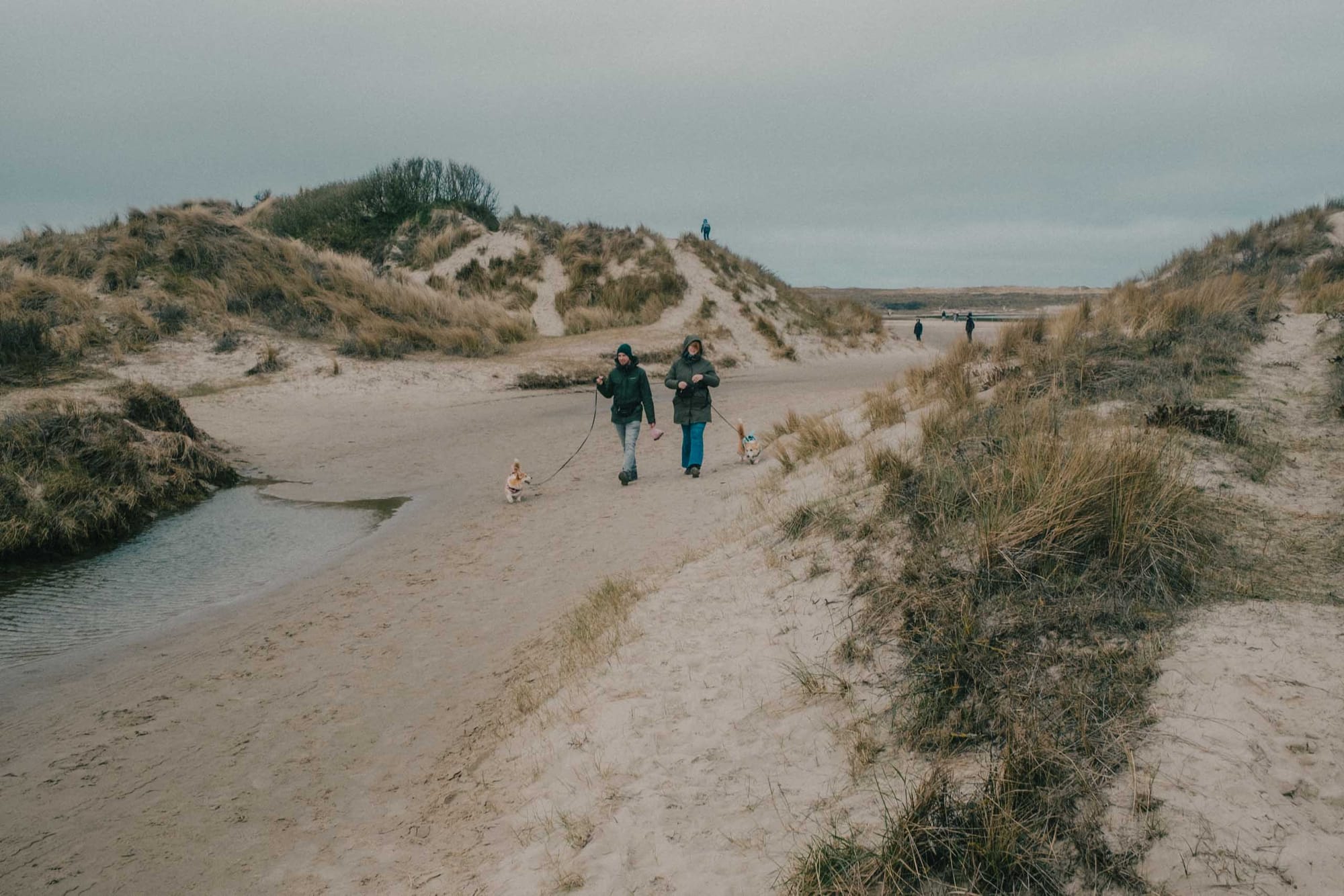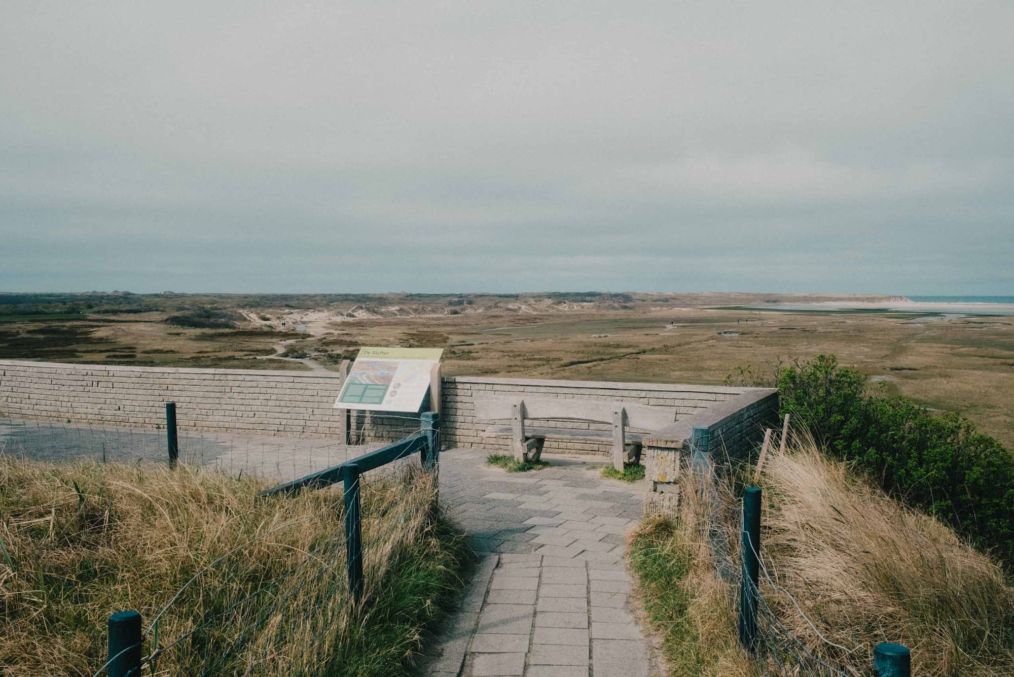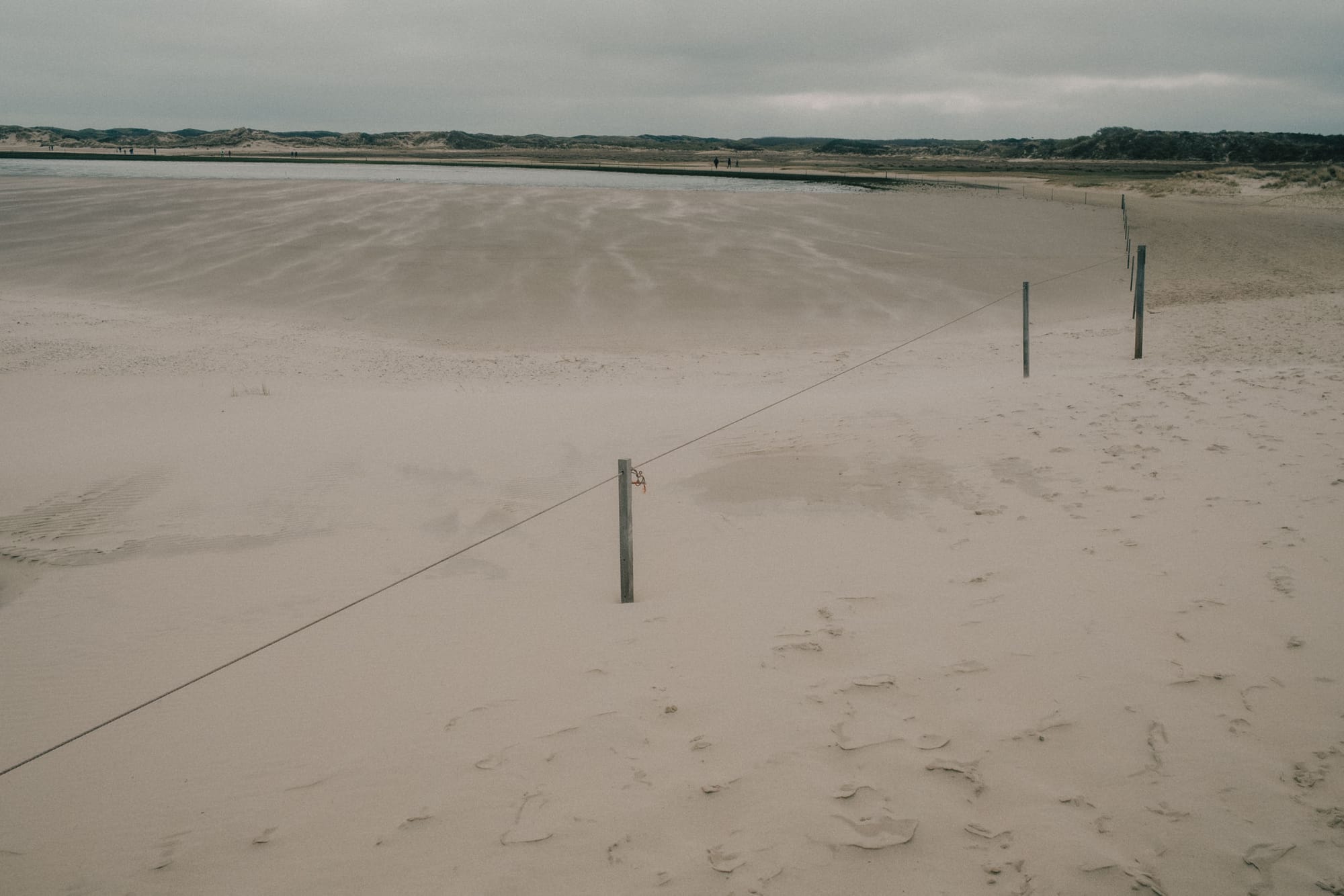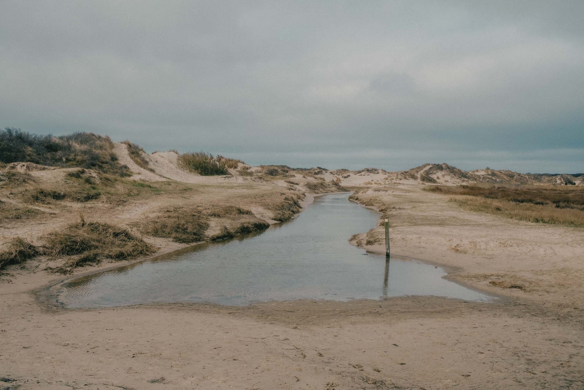 Only after descending down the steps across the 'Zanddijk,' which protects the northern part of the island from the sea, you truly come in contact with the elements. The soil is saturated with water, the wind blows freely, and the air has a salty crisp in it that you don't quite get on the other side of the dike. A large canal flows inland from the sea, with little canals sprouting along the sides of it. People traverse the unpredictable landscape by meandering through it, carving out their own paths where they can.