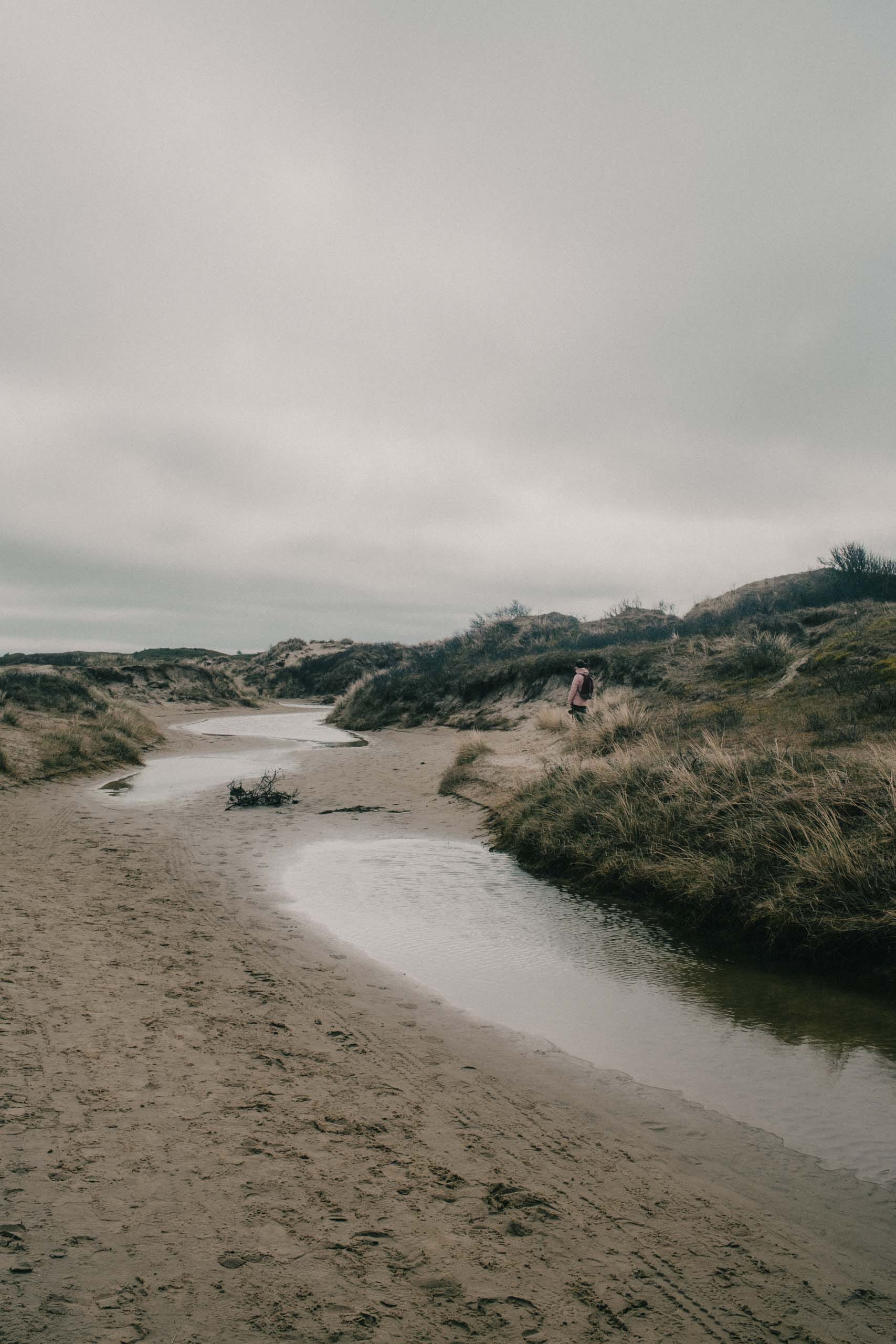 I make my way across the land until I reach the sea. The moment I stick my head around the corner of the dunes near the coast, I am sandblasted. The North Sea wind is completely unobstructed since the United Kingdom, and you can feel how it was able to build up power. The waves are pounding on the beach in an unwelcoming manner this early in April. I wonder what it's like in summer. If the area is a little easier to hang out in. But mostly, I find myself unsurprised the dikes didn't hold a century ago, if this is the raw power they had to face.